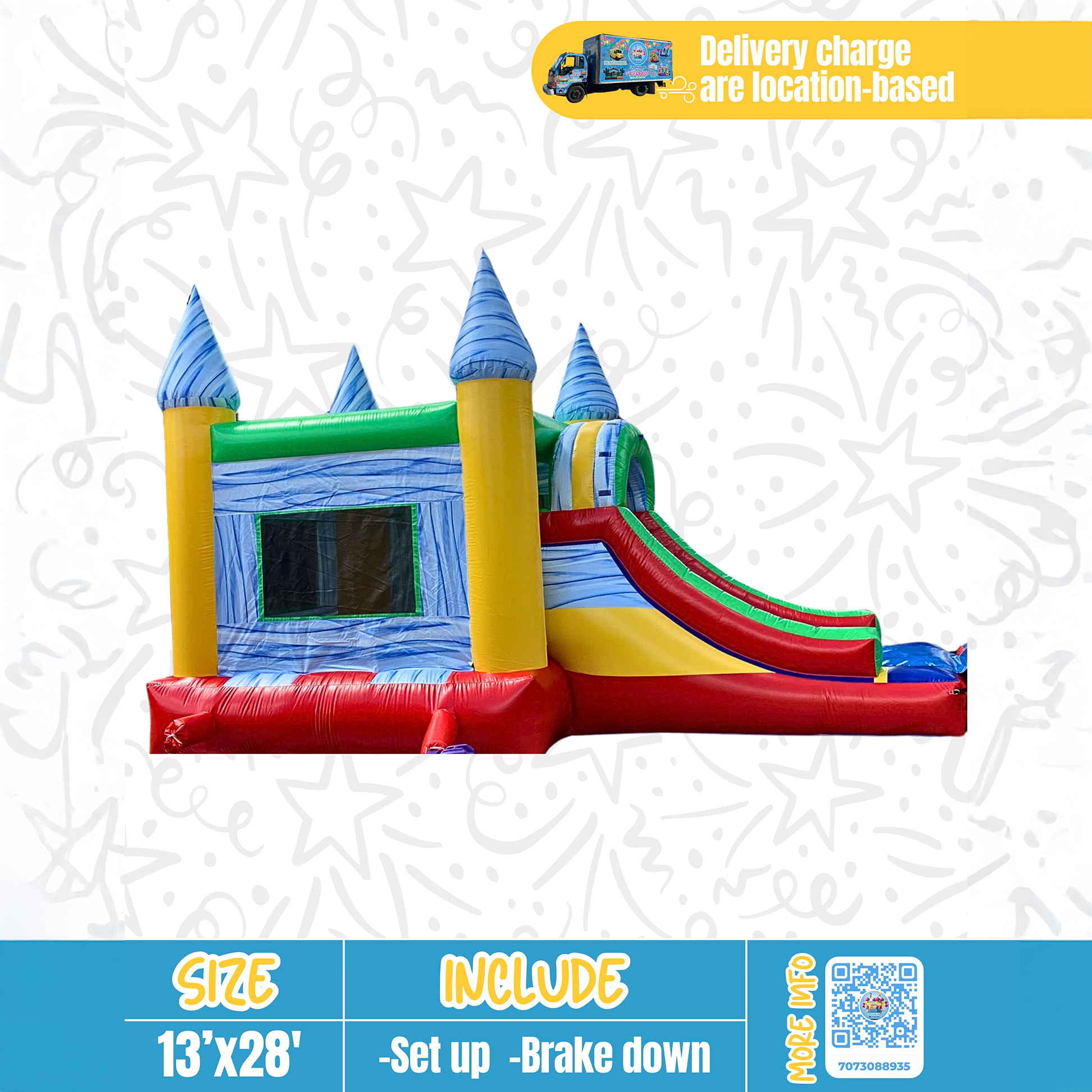 Whether you're hosting a children's birthday party, a family gathering, or any event where fun is the order of the day, our bounce house rental is sure to be a hit. If you require power for the bounce house and don't have access to outlets, we can arrange a generator for your convenience for an additional fee. Get ready to bounce, laugh, and create lasting memories with our fantastic rental bounce house!