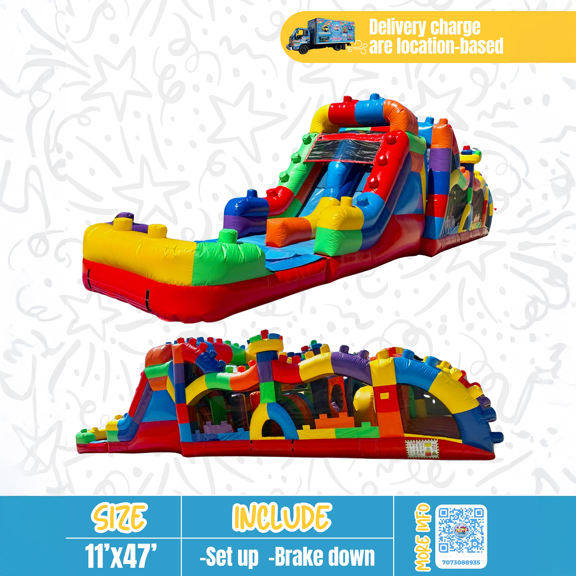 Whether you're hosting a children's birthday party, a family gathering, or any event where fun is the order of the day, our bounce house rental is sure to be a hit. If you require power for the bounce house and don't have access to outlets, we can arrange a generator for your convenience for an additional fee. Get ready to bounce, laugh, and create lasting memories with our fantastic rental bounce house!